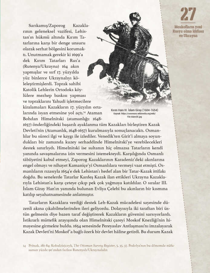 Kitapta geçen şu cümlenin peşinde geçmişin geçip gitmediğine, güncelliğini her daim muhafaza ettiğine şahit olacaksınız: “IV. Mehmed, Moskofların ‘Ukrayna mülkü’ Çehrin’i işgal etmelerini karşılıksız bırakmayacağını ilan ediyordu.”