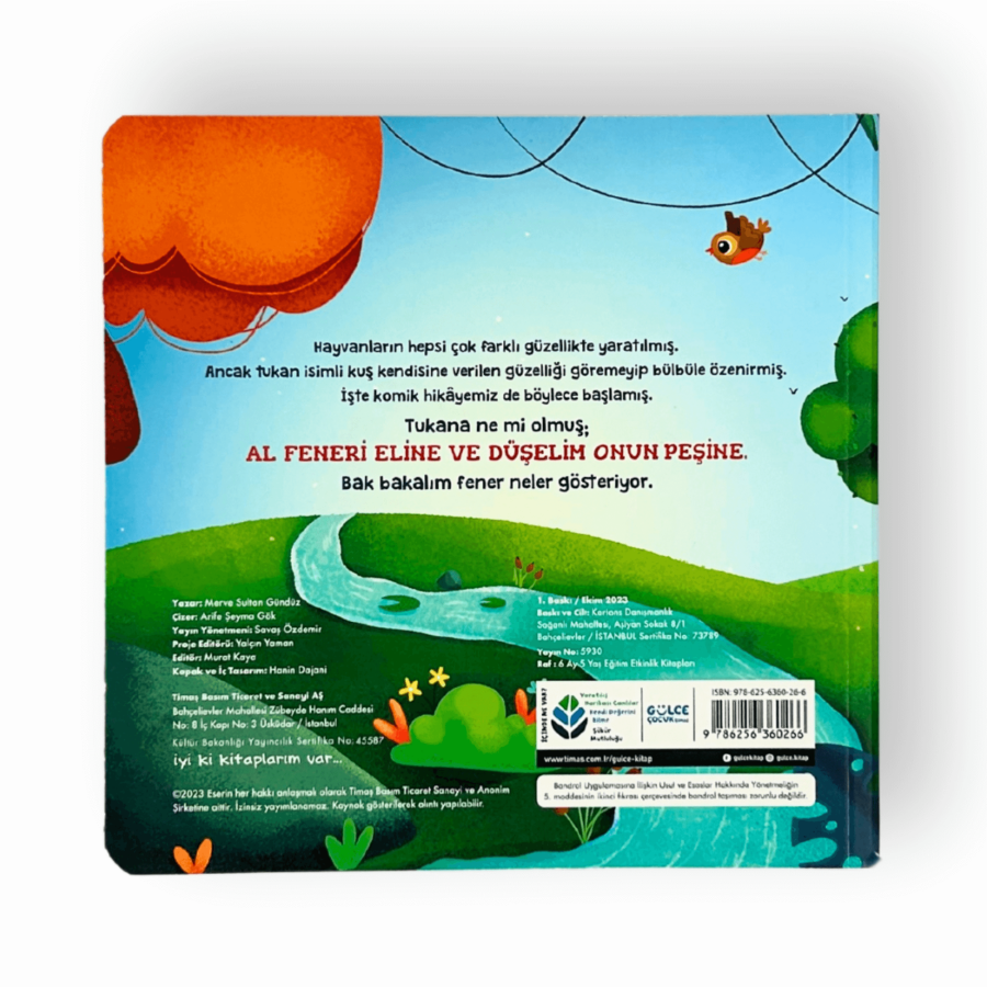 Hayvanların hepsi çok farklı güzellikte yaratılmış. Ancak Tukan isimli kuş kendisine verilen güzelliği göremeyip bülbüle özenirmiş. İşte komik hikâyemiz de böylece başlamış. Tukan'a ne mi olmuş; al fenerini eline ve düşelim onun peşine. Bak bakalım fener neler gösteriyor.