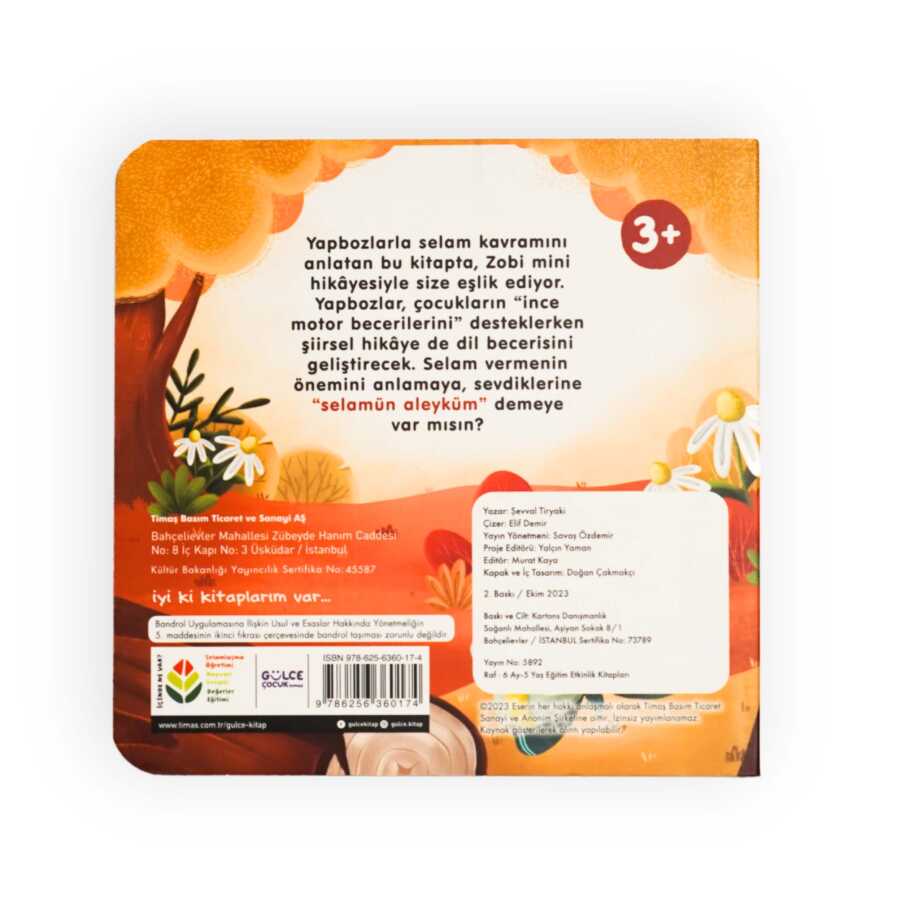 KİTAP NEDEN ÖNEMLİ * Selamlaşmayı öğrettiği için * Yapboz oyunu eşliğinde dinimizce önemli görülen selamlaşmayı kavrattığı için * Hem ulusal hem de uluslararası sahada bu konu ilk kez yapbozlu kitapla verildiği için * Okul öncesi çocukların tekrar tekrar kullanabileceği bir boardbook olduğu için * Yapboz etkinliği sebebiyle ince motor becerilerinin gelişimine destek olduğu için ÖNEMLİDİR.
