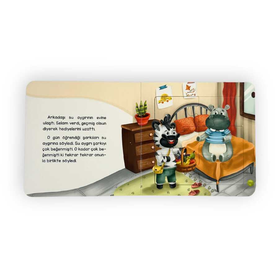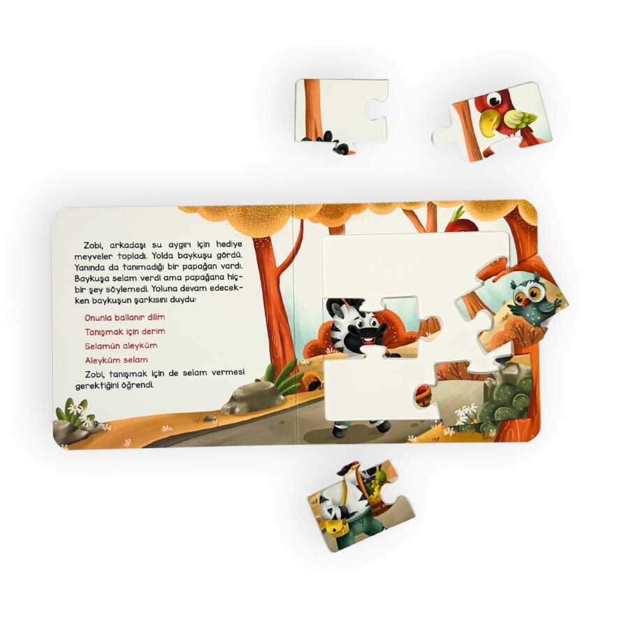 Yapbozlarla "Selamlaşmayı" öğreten bu kitapta, Zebra mini hikâyesiyle çocuklara eşlik ediyor. Yapbozları yaparken "ince motor becerilerinin" gelişimi desteklenirken hikâye ve şiirle dil becerilerinin gelişimi destekleniyor. Minik okurların keyifle tekrar okuyup oynayacakları bu kitap çok önemli sözler söylüyor. Gelin kulak kabartalım.