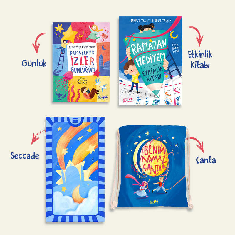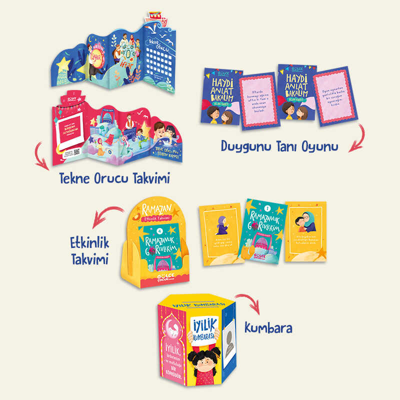 Var mısınız bu Ramazan’ı çocuklarla neşe içinde yaşamaya… Ramazan Hediyem, minik kalplere bu mübarek ayın heyecanını ve sevincini doyasıya yaşatmak için tasarlandı! Etkinlik kitabı, Ramazan günlüğü, renkli süsler, eğlenceli oyunlar, etkinlik takvimi, tekne orucu takvimi ve daha birçok ürünle dopdolu. Bu özel kutu, çocukları hem eğlendiriyor hem de Ramazan’ın manevi atmosferiyle buluşturuyor. Her gün yeni bir keşif, her an yepyeni bir heyecan!