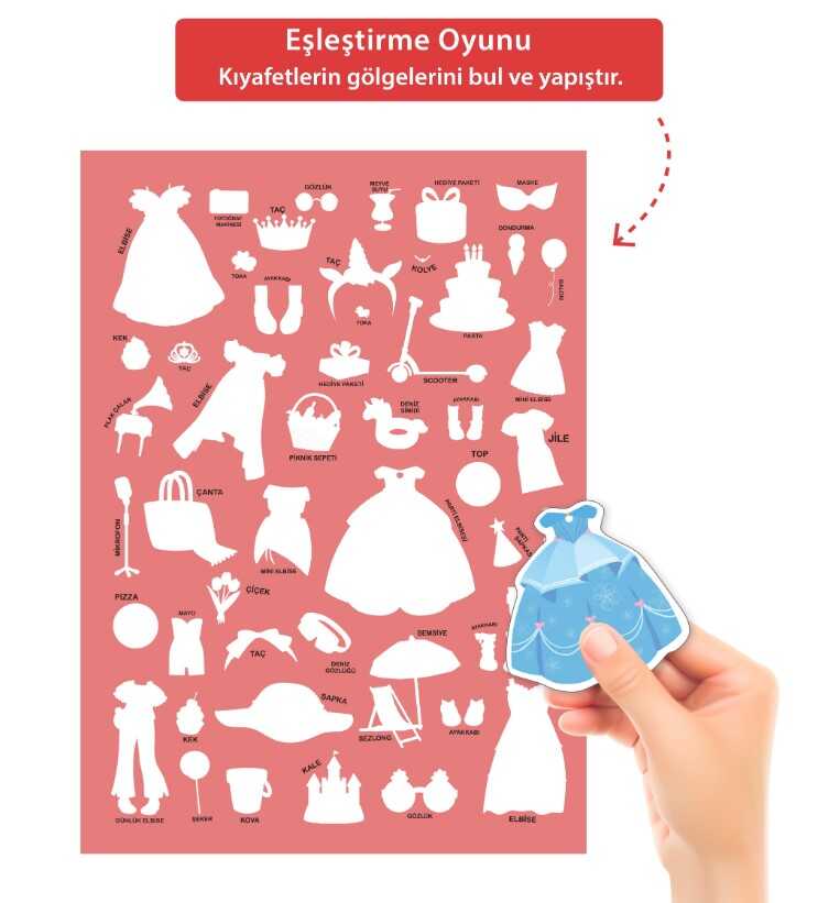 -Eşleştirme Oyunu: Kıyafetlerin gölgelerini tahmin et ve yapıştır.