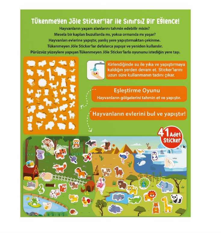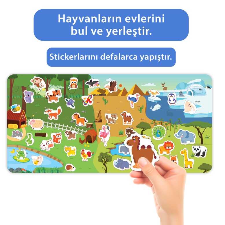 Hayvanların yaşam alanlarını tahmin edebilir misin? Mesela bir kaplan buzullarda mı, yoksa ormanda mı yaşar? Hayvanları evlerine yapıştır, yanlış yere yapıştırmaktan çekinme. Tüken