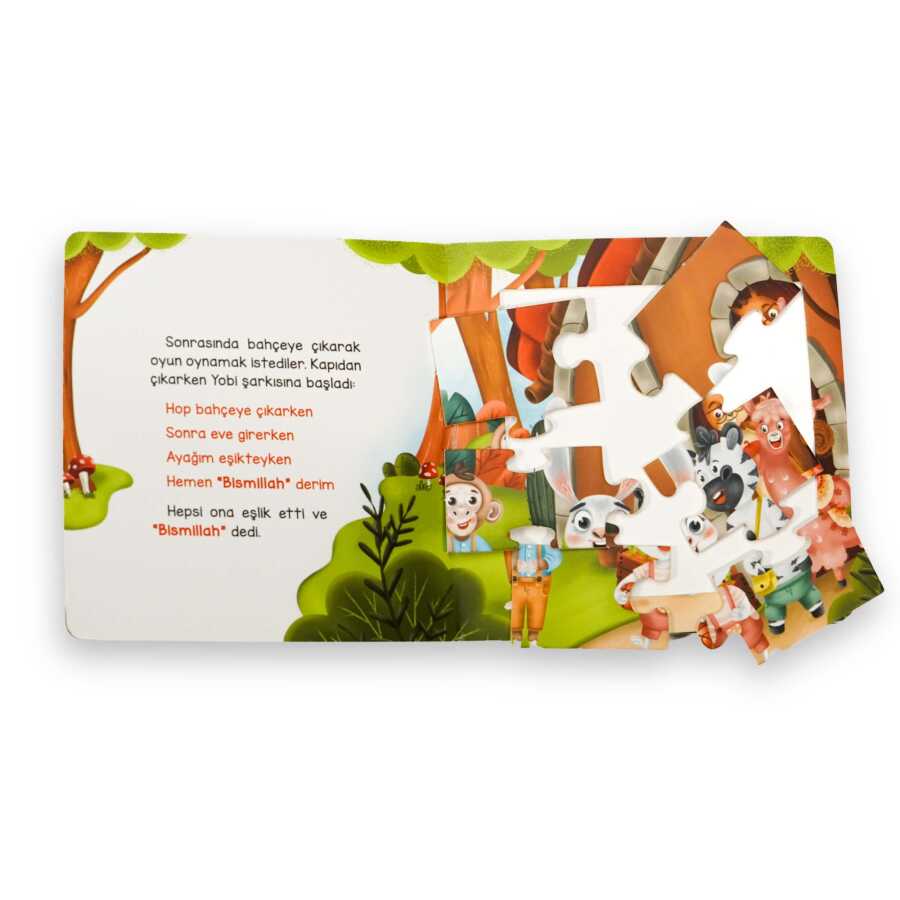 Yapbozlarla Besmele'yi anlatan bu kitapta, Yobi mini hikâyesiyle çocuklara eşlik ediyor. Yapbozları yaparken "ince motor becerilerinin" gelişimi desteklenirken hikâye ve şiirle dil becerilerinin gelişimi destekleniyor. Minik okurların keyifle tekrar okuyup oynayacakları bu kitap çok önemli sözler söylüyor. Gelin kulak kabartalım...